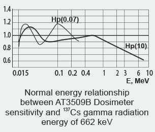 | 能量靈敏度(662keV) Hp(10) 15keV...1.5MeV 1.5keV...10MeV Hp(0.07) 15keV...300keV(AT3509B,C) | ±25% ±60% ±30% |
