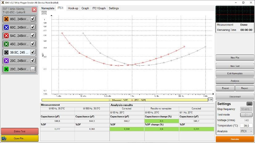 ◆窄帶 DFR 的 1 Hz 點(diǎn) – 獨(dú)特且經(jīng)過(guò)Megger驗(yàn)證的套管評(píng)估點(diǎn)@20?C